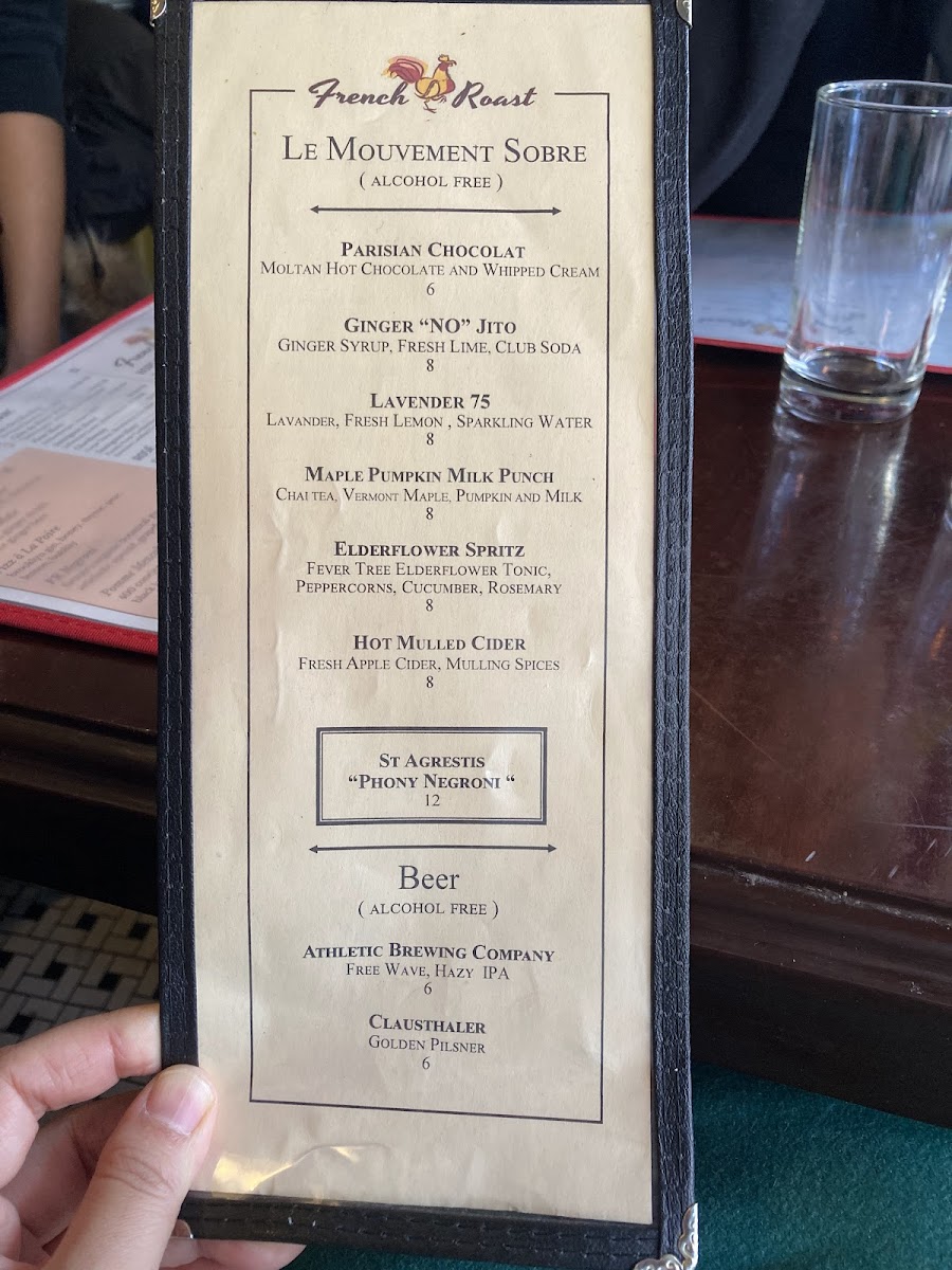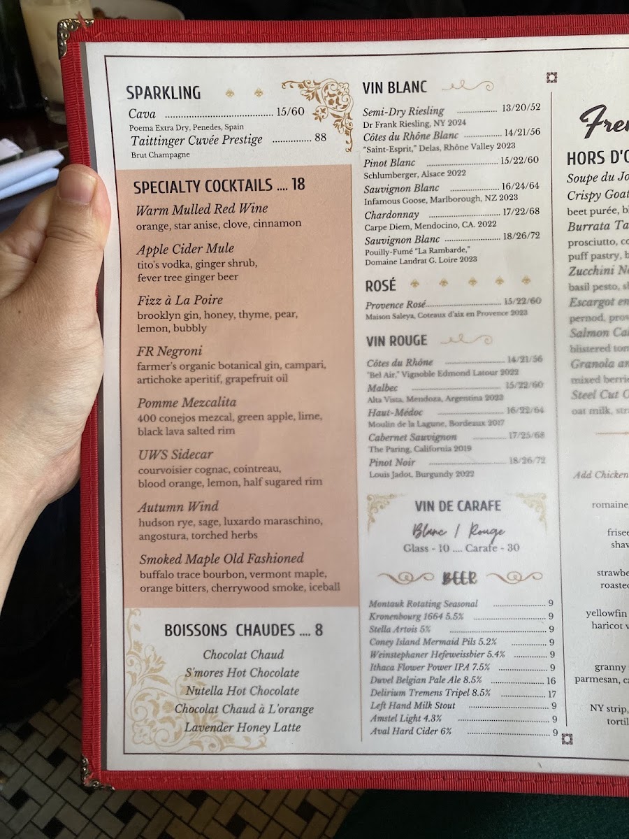 Beverage offerings span from elegant sparkling wines like Taittinger Cuvee Prestige Brut to inventive specialty cocktails such as the L’Etoile and Mango Chili Margarita. Complement your meal with refreshing cold drinks like the Lavender Honey Iced Latte or the vibrant Hibiscus Spritz. Attentive service enhances the cozy, bistro ambiance, making French Roast a perfect spot to savor classic French cuisine with a lively New York twist.